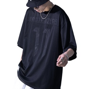 メッシュレイヤード加工のクールなスポーツ五分袖シャツアイテム。